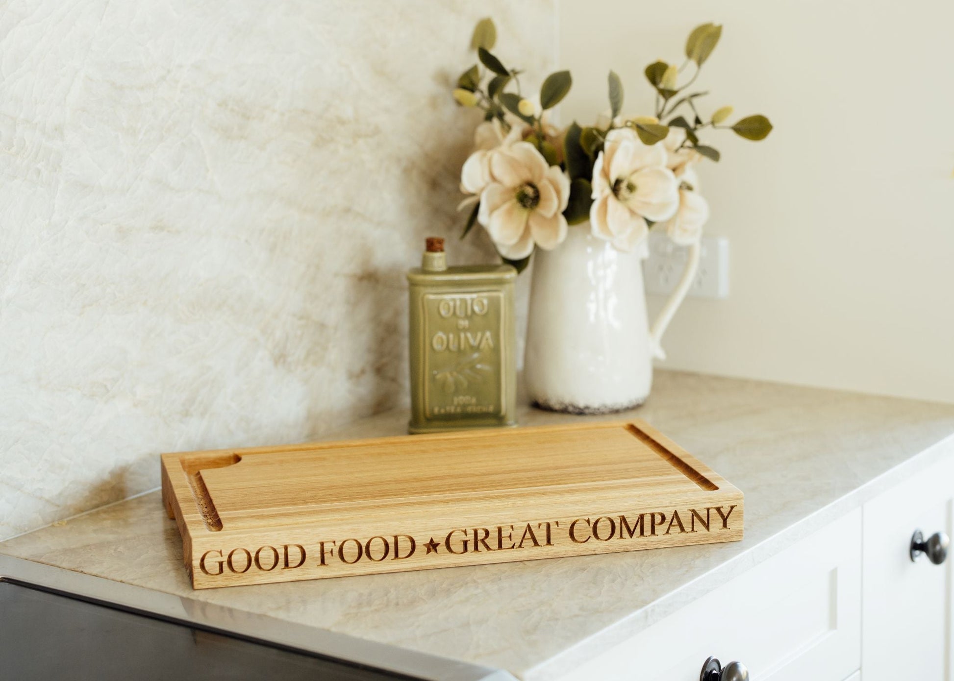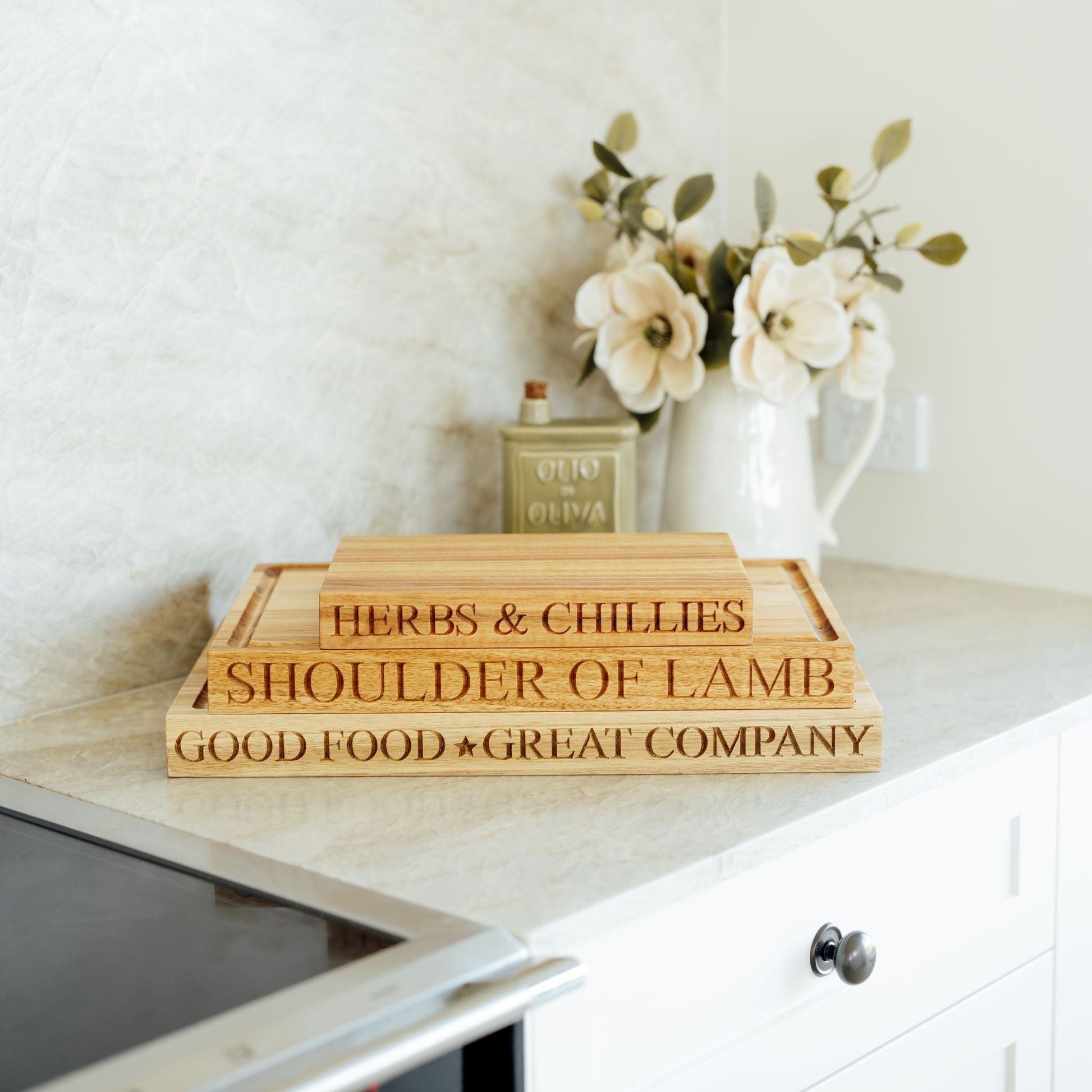 Personalise it with a family name, farm name, or a favourite saying like “GOOD FOOD ⭐ GREAT COMPANY”. A thoughtful gift for weddings, housewarmings, or simply to be enjoyed at home.