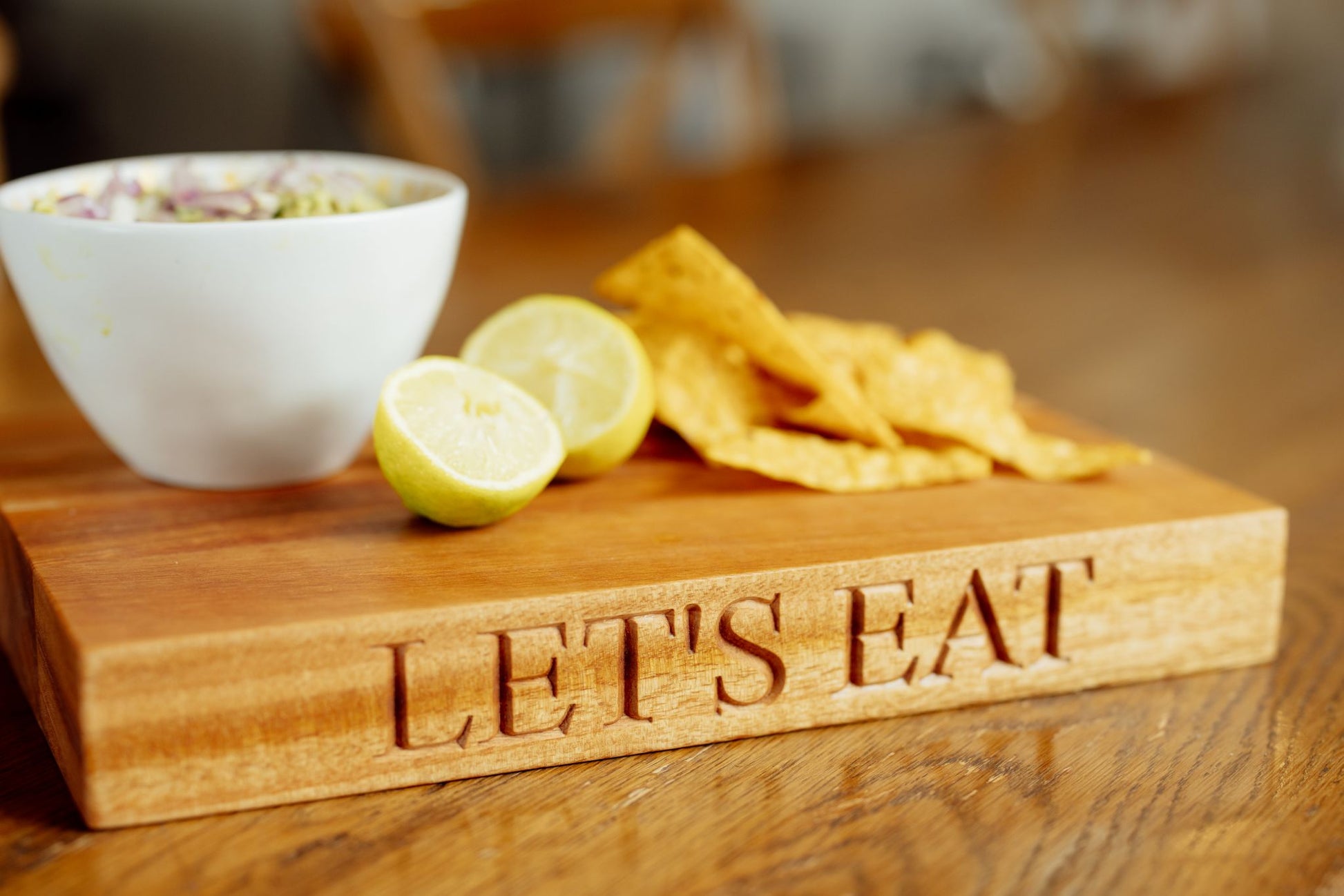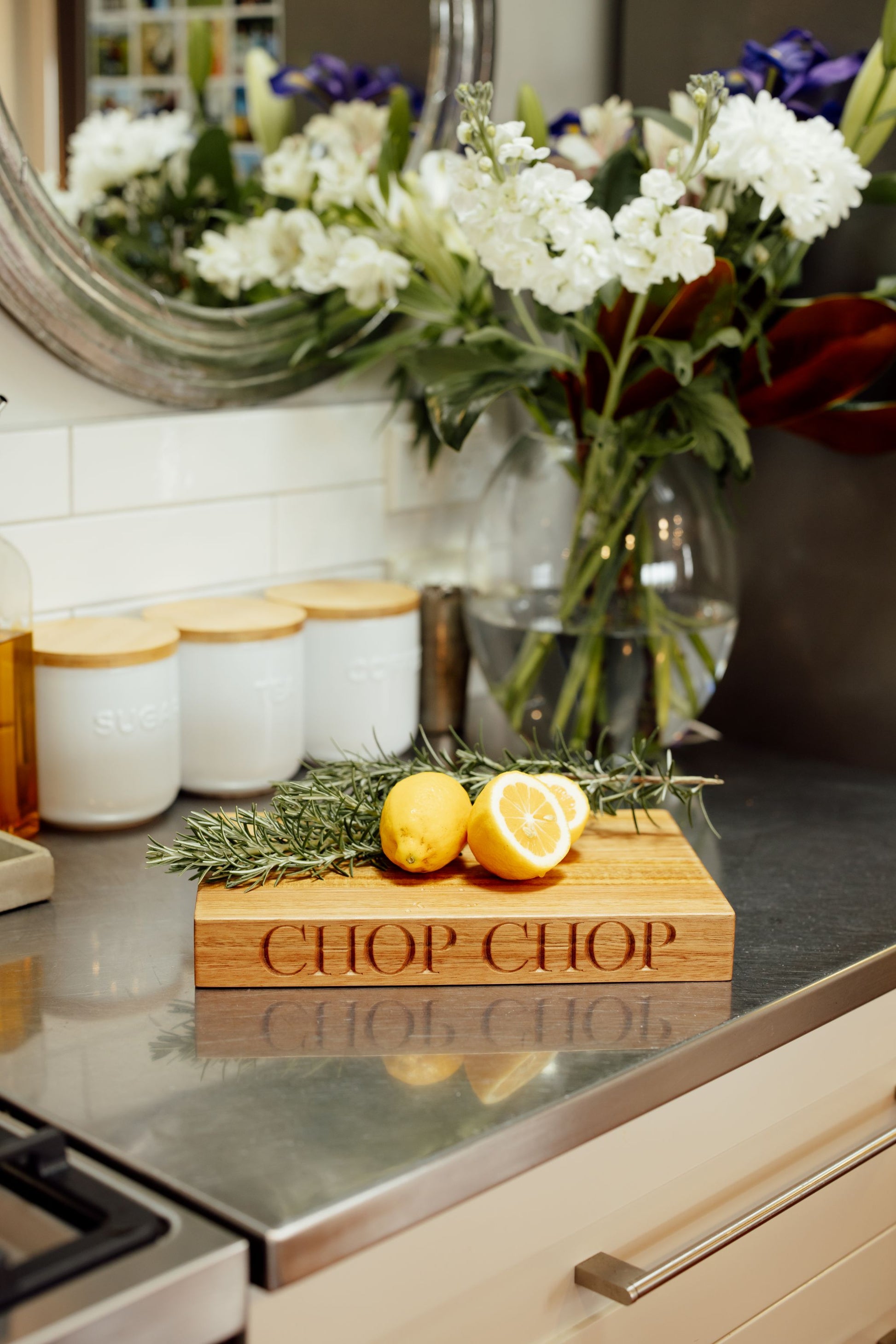 Make it personal with a name, date, or quote like “CHOP CHOP” — ideal for weddings, housewarmings, or thoughtful everyday gifting.